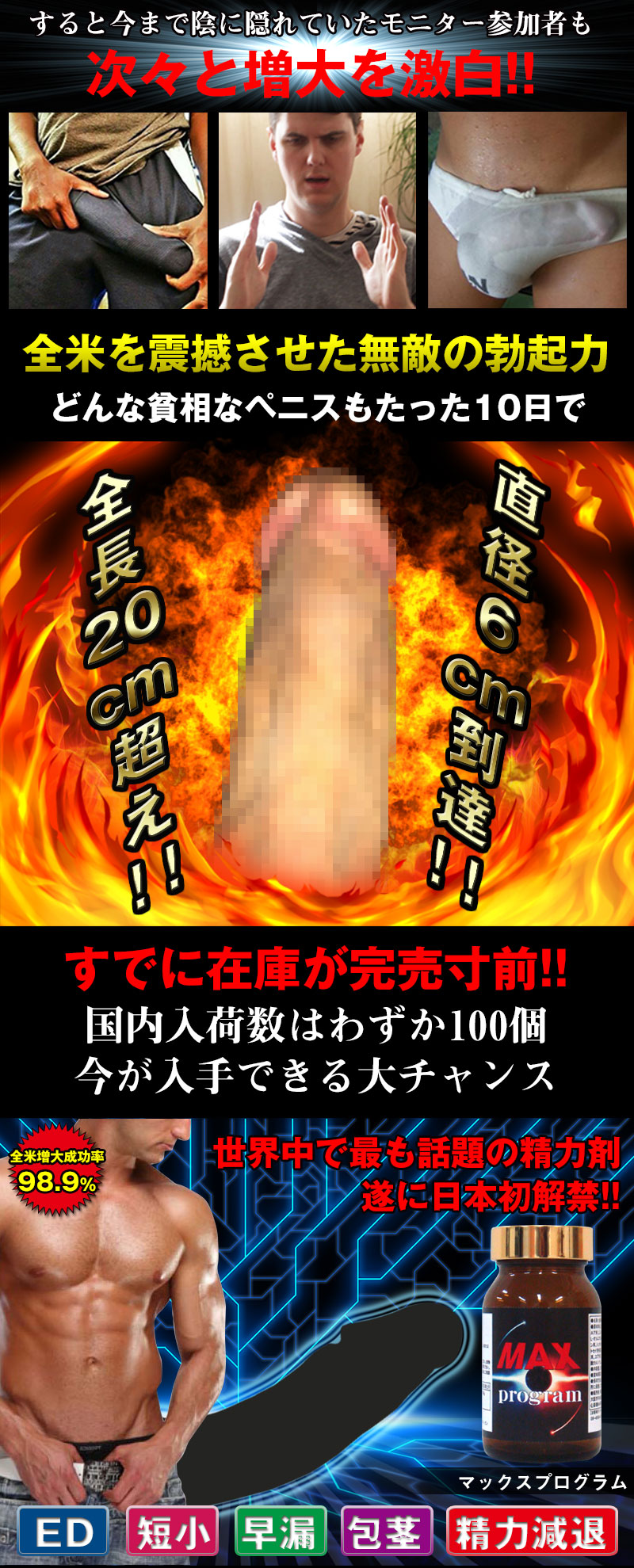 http://www.store-mix.com/ko-bai/product.php?afid=13175873&pid=2779761&oid=12298&hid=159691&aftype=pct11 5cmの陰茎が⇒たった10日で爆勃 20cm超えに!短小ED患者がギン勃ち極デカ砲♂に成長!