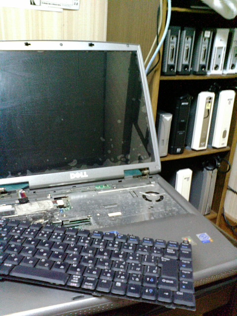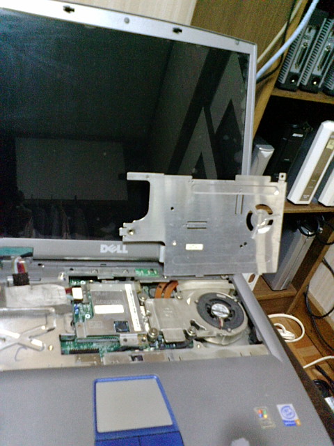 2、光ディスクドライブの撤去。ノートPCのウラ蓋を見てネジ止めされていたらはずしてDVD-RWドライブを引き抜く。ガッチャンコで接続されているのでねじさえはずせば引っ張れば取れる。