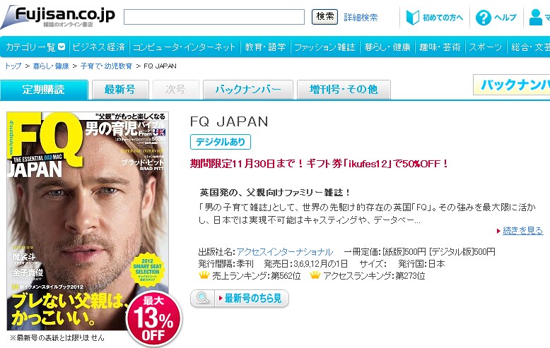 ┃期間限定割引 ┃ 『FQ JAPAN』が11/30まで50%オフ!