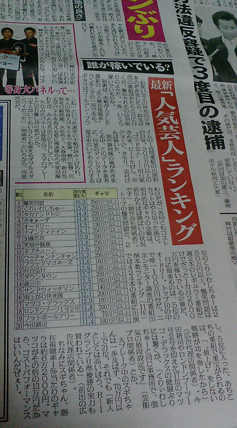 芸人の稼ぎ、ギャラランキング