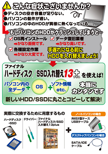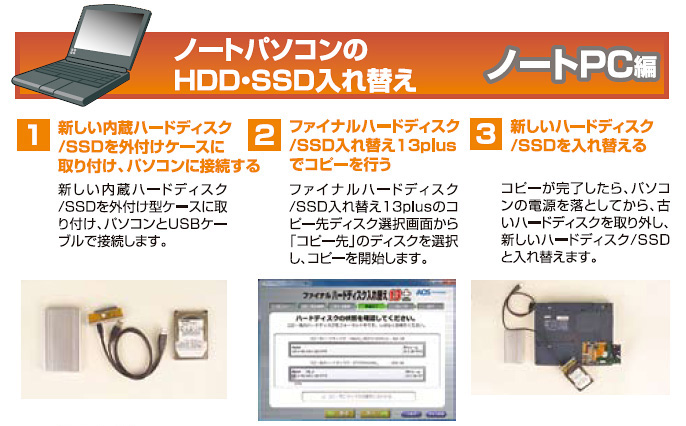 OS、インストールしてあるソフト丸ごと入れ替えるので再インストールなどの必要なしですぐに使える。